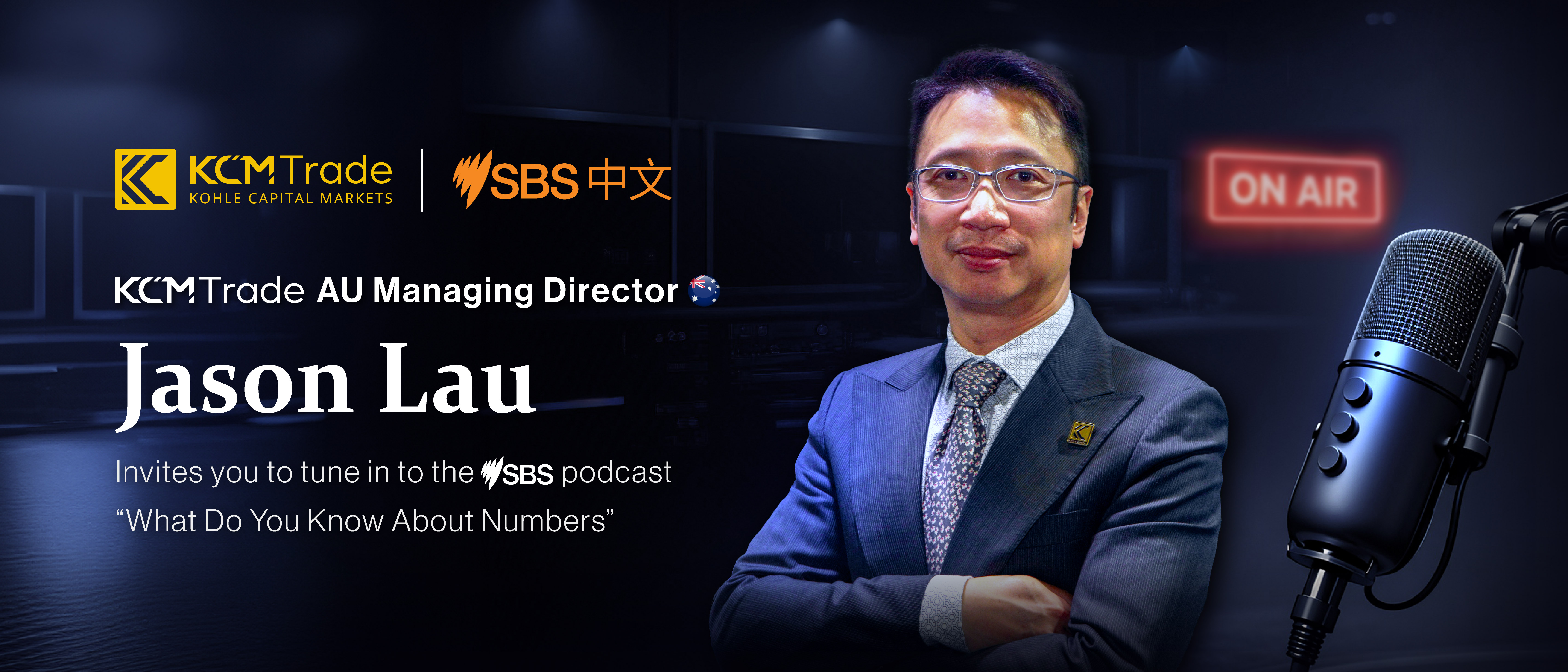 Jason Lau, Managing Director of KCM Trade Plus, was recently invited by the Special Broadcasting Service (SBS) in Australia to host the Cantonese podcast series “What Do You Know About Numbers?”, which aims to explore financial knowledge and enhance financial literacy for listeners.